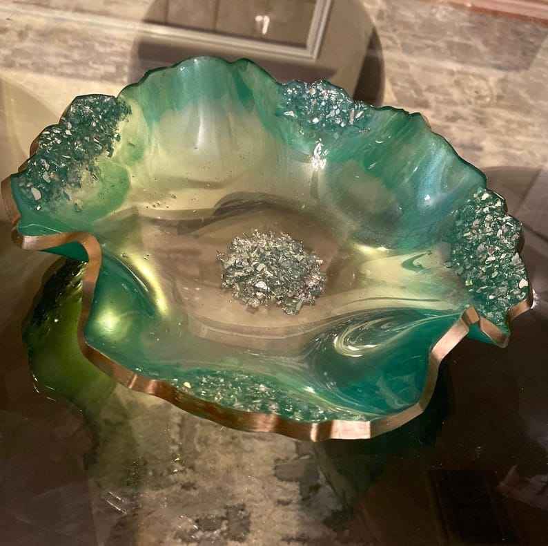 ชามเรซิ่นรักษ์โลก ขอบคริสตัลบดละเอียดสวยงาม ทำด้วยมือ ทนความร้อน ใช้กับเครื่องล้างจานได้