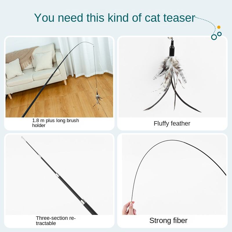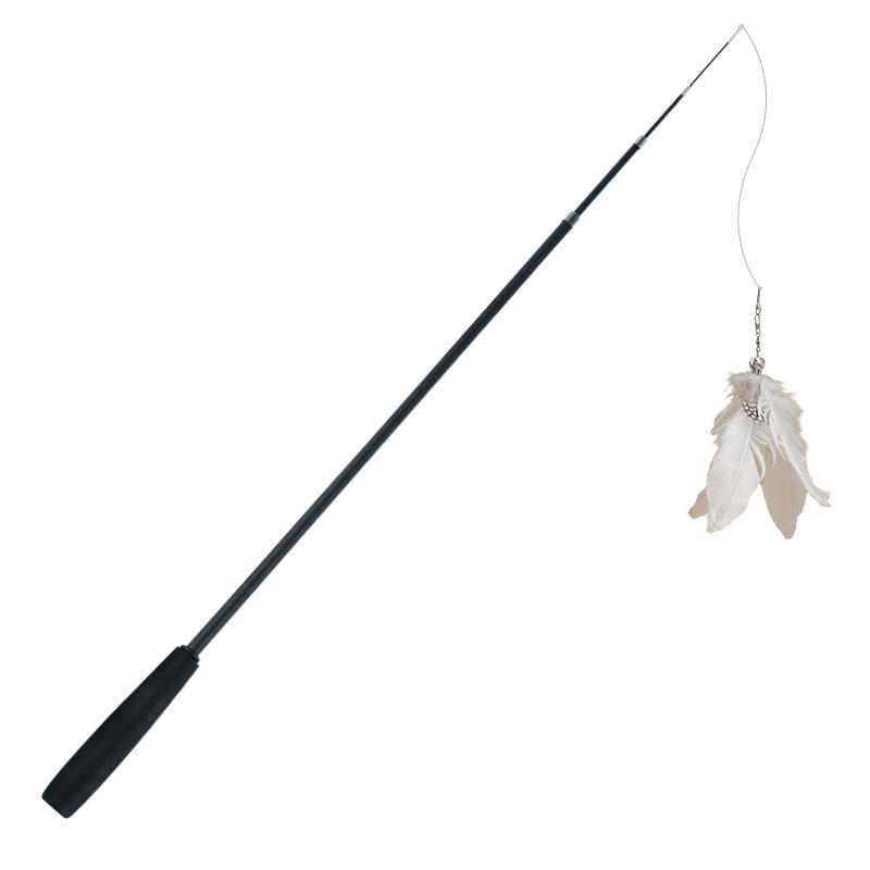 เป็นมิตรกับสิ่งแวดล้อมสัตว์เลี้ยงแบบพับเก็บได้ Interactive กระดิ่งขนนกไม้กายสิทธิ์ของเล่นตลกแมวตกปลา Rod พร้อมทีเซอร์เติมลูกแมวทําจากพลาสติก