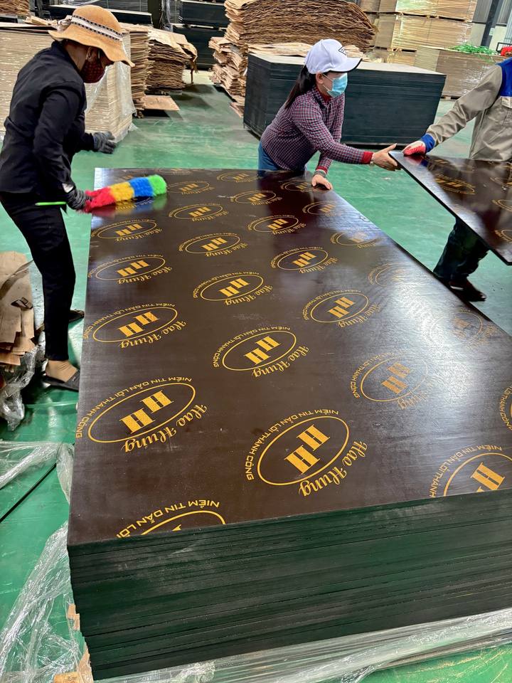 ไม้อัดเคลือบฟิล์มสีน้ำตาล/ดำ สำหรับงานก่อสร้างภายในอาคาร ใช้ซ้ำได้ 10 ครั้ง เป็นมิตรกับสิ่งแวดล้อม ขนาด 8x4 หนา 12-15-18 มม. มาตรฐาน E1 จากซัพพลายเออร์เวียดนาม