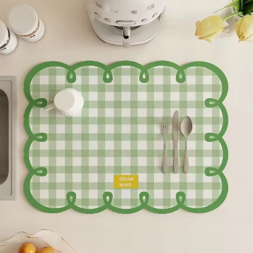 แผ่นรองจานยางรักษ์โลก ซึมซับน้ำได้ดีเยี่ยม ตัดได้ ทนความร้อน ทนทาน ปลอดสารพิษ ใช้ซ้ำได้ รูปทรงสี่เหลี่ยมน่ารัก หนา 2.3 มม.