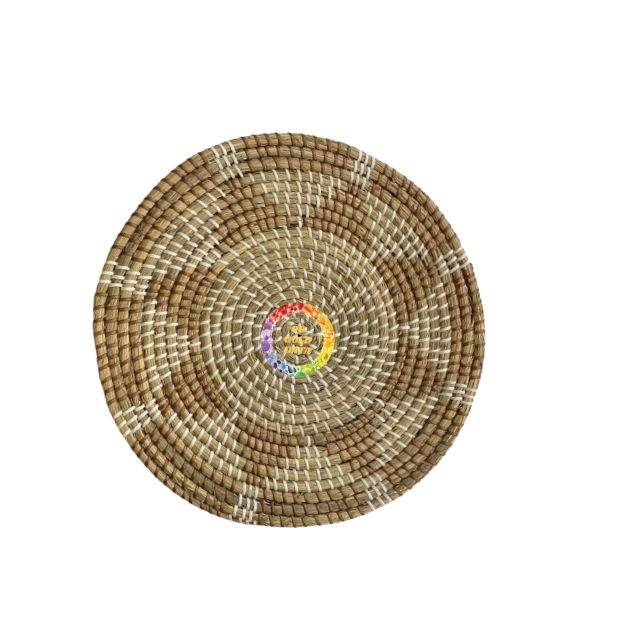 จานแขวนหญ้าทะเลเป็นมิตรกับสิ่งแวดล้อมทนทานทำด้วยมือในเวียดนามสำหรับการตกแต่งภายในแบบโบโฮ