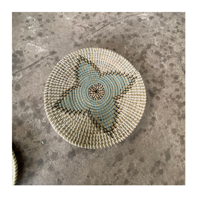 ตะกร้าจานหญ้าทะเลแบบเรียบง่ายเป็นมิตรกับสิ่งแวดล้อมของตกแต่งผนังทำด้วยมือแผ่นหญ้าทะเลสไตล์ชนบทที่แขวนบนผนังด้วยไม้ไผ่หวายหวาย