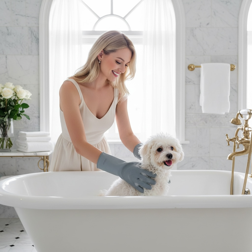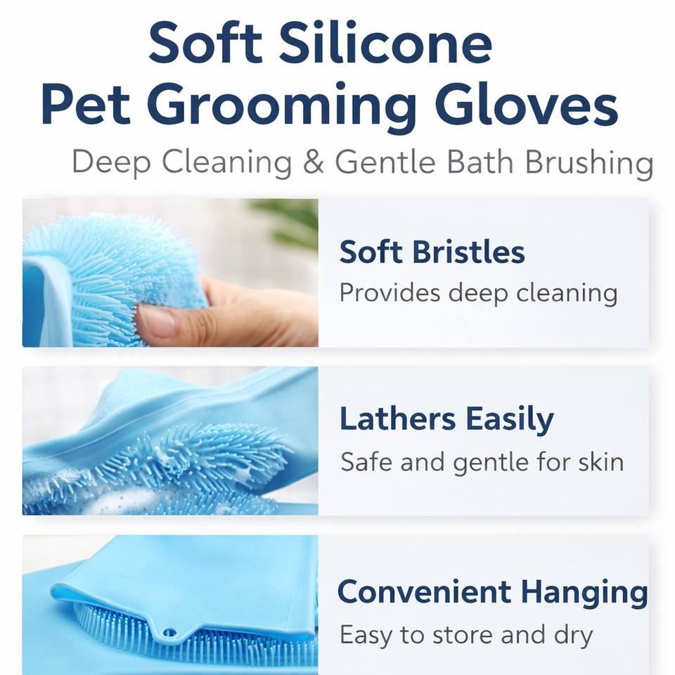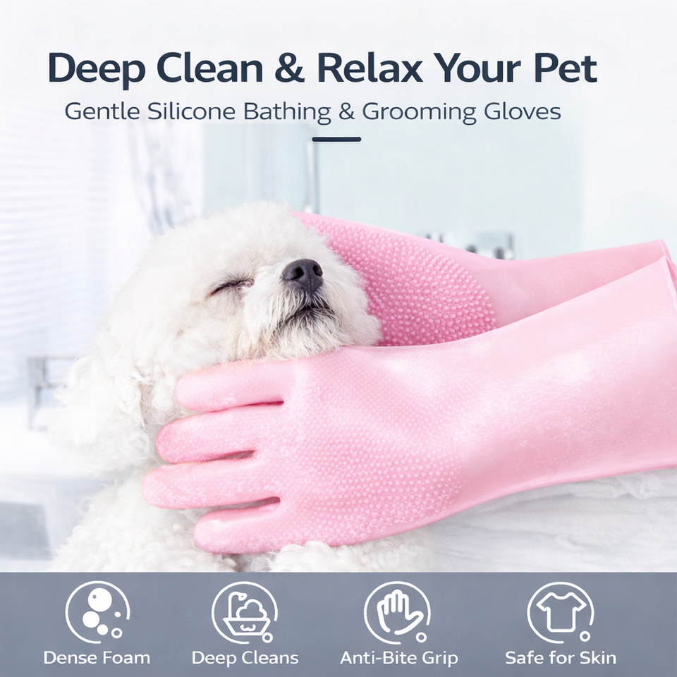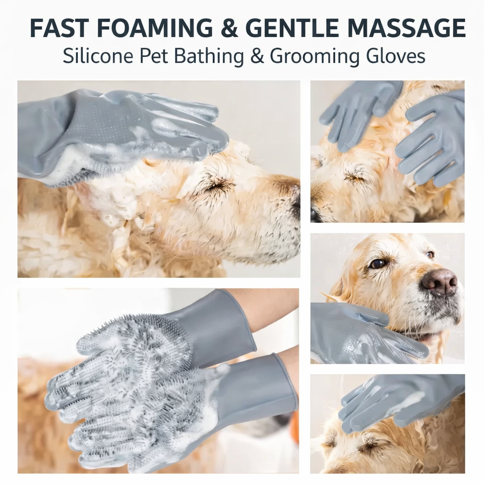 ถุงมือและแปรงอาบน้ำสัตว์เลี้ยงซิลิโคนแบบเรียบง่ายเป็นมิตรกับสิ่งแวดล้อมสำหรับสุนัขและแมว - นวดอย่างอ่อนโยนและขจัดขนหลุดร่วง