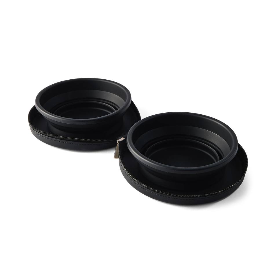 ชามน้ำสุนัขแบบพับได้ 2 ชิ้น ชุดพกพาพร้อมซิป ทำจากใยซิลิโคนรักษ์โลก กันน้ำ ทนทาน ทำความสะอาดง่าย ดีไซน์คลาสสิก