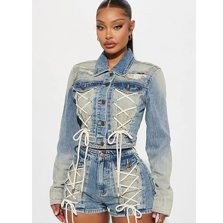 ชุดเซ็ตยีนส์ขาสั้นผ้าแคนวาสแบบวินเทจสำหรับฤดูร้อน รักษ์โลก เสื้อแขนสั้นแฟชั่นลำลองทรงหลวม ชุดเซ็ต 2 ชิ้นสำหรับผู้หญิง
