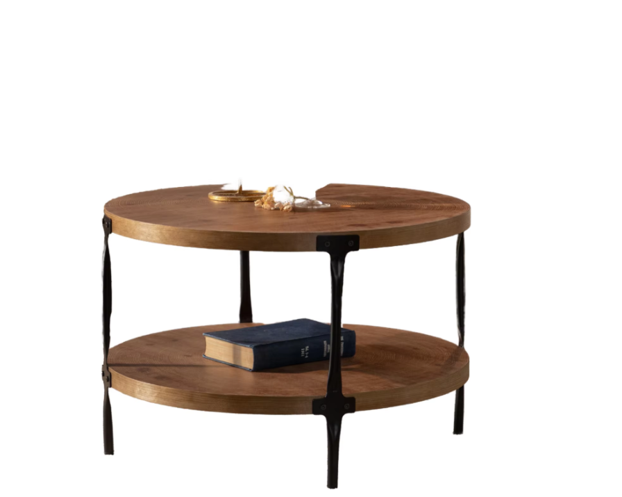 โต๊ะกาแฟหน้าไม้จริงรักษ์โลก ดีไซน์ใหม่ โครงเหล็กสีดำ เฟอร์นิเจอร์ห้องนั่งเล่นหรูหราทันสมัย
