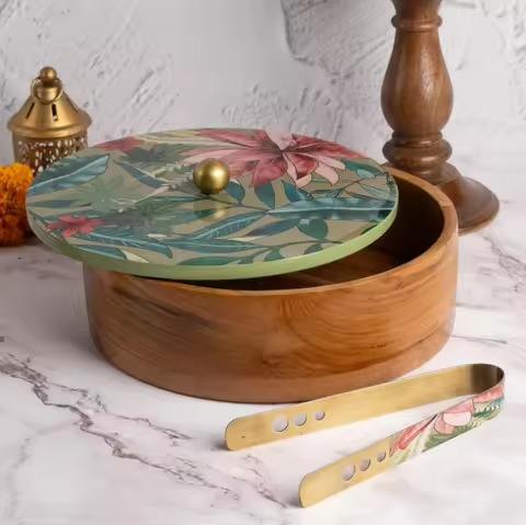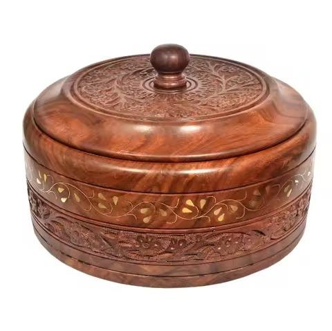 Eco Friendly Solid Wood Wooden Chapati Box Handmade Roti Bread Keeper Storage Container