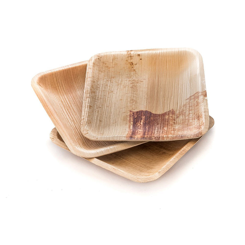 จานใบกระถินทรงสี่เหลี่ยมเป็นมิตรกับสิ่งแวดล้อม ย่อยสลายได้ ใช้แล้วทิ้ง เหมาะสำหรับร้านอาหาร งานจัดเลี้ยง และใช้ในบ้าน