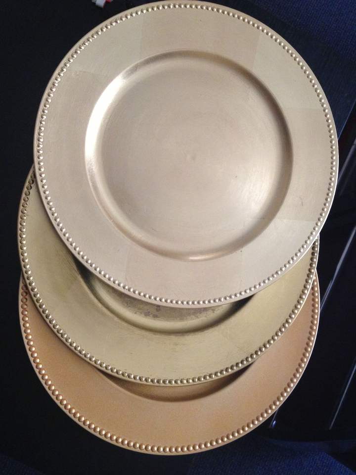 แผ่นที่ชาร์จสแตนเลสสีทองเป็นมิตรกับสิ่งแวดล้อมสำหรับงานแต่งงานและงานต่างๆการยกระดับการรับประทานอาหารสุดหรูงานเฉลิมฉลอง