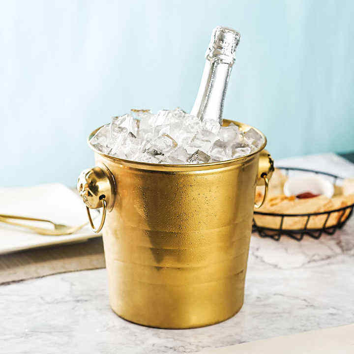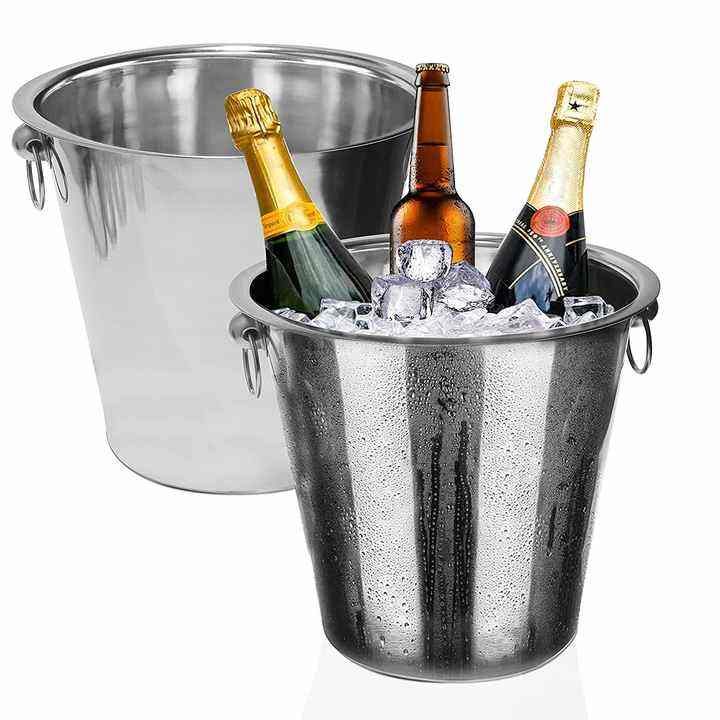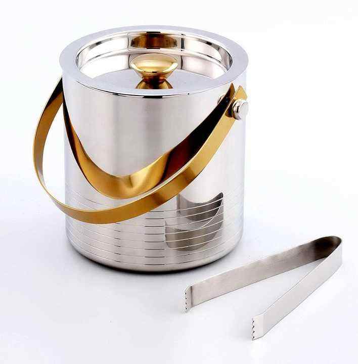 ถังน้ำแข็งสแตนเลสแบบเป็นมิตรกับสิ่งแวดล้อม พร้อมฝาปิด ที่จับ ที่คีบ และฉนวนกันความร้อนสองชั้น สำหรับแช่เครื่องดื่มในงานปาร์ตี้