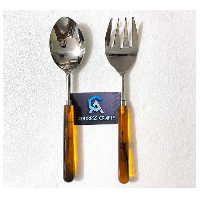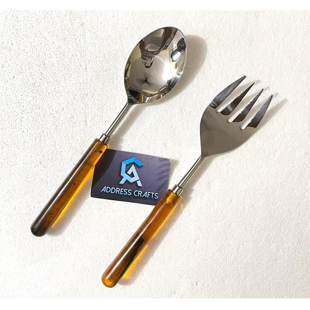 เครื่องครัวสแตนเลสพร้อมที่จับทำจากเรซินเต่าช้อนรับประทานอาหาร