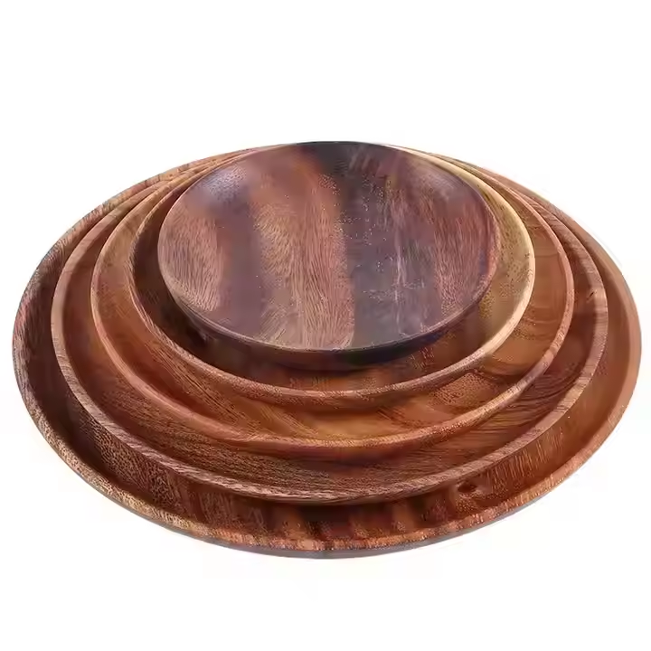 จานเสิร์ฟไม้กลมทำมือแบบเป็นมิตรกับสิ่งแวดล้อมสำหรับร้านอาหาร ชุดอาหารค่ำโดย Crescent Crafts