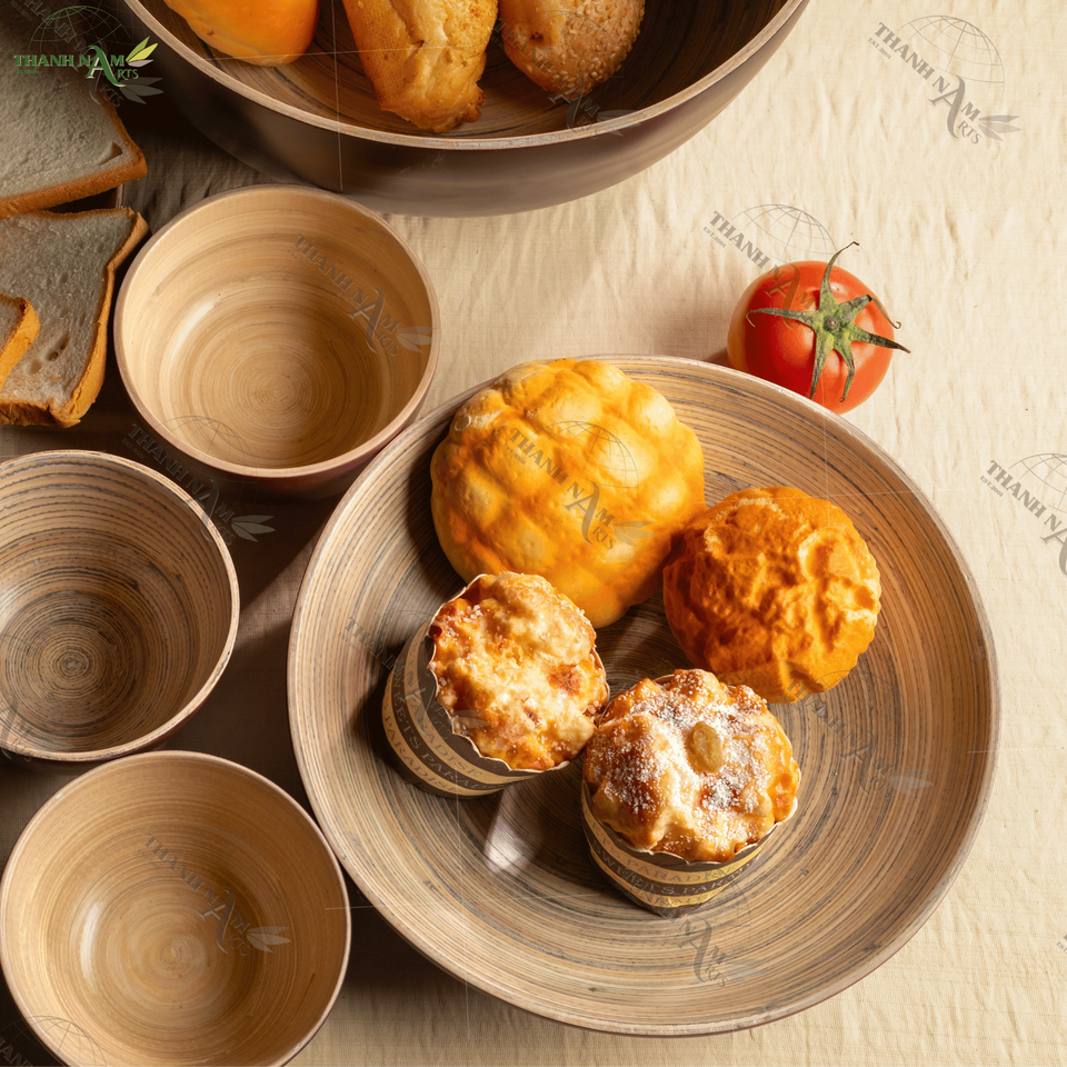 จานจานไม้ไผ่แบบยุโรปธรรมชาติสำหรับตกแต่งโต๊ะอาหารและงานเลี้ยงเป็นมิตรกับสิ่งแวดล้อม