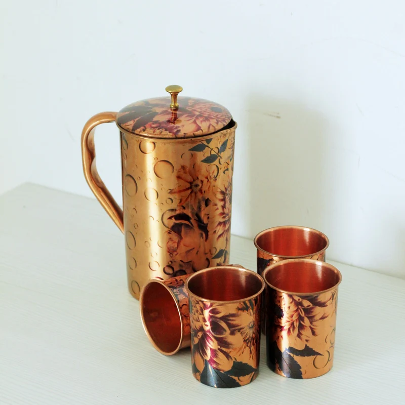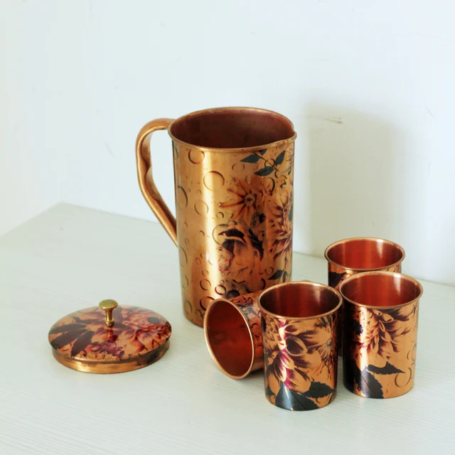 เหยือกน้ำทองแดงดีไซน์คลาสสิก สวยงาม เป็นมิตรกับสิ่งแวดล้อม พร้อมฝาปิด สำหรับใช้ในบ้าน ห้องครัว งานเลี้ยง งานแต่งงาน โรงแรม ร้านอาหาร และภาชนะบนโต๊ะอาหาร
