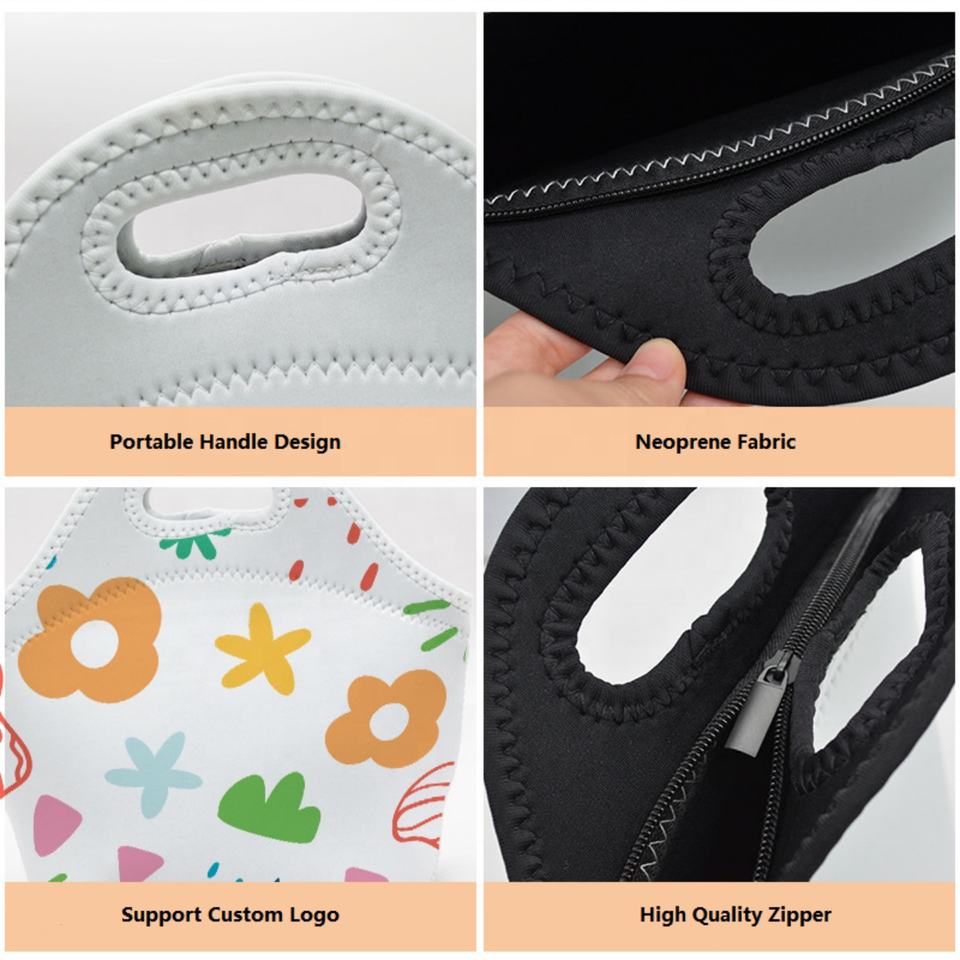 กระเป๋าเก็บความเย็นแบบพกพาสำหรับอาหารและเครื่องดื่ม วัสดุเนโอพรีน รักษ์โลก พิมพ์ลายแบบซับลิเมชั่น พร้อมโลโก้ตามสั่ง