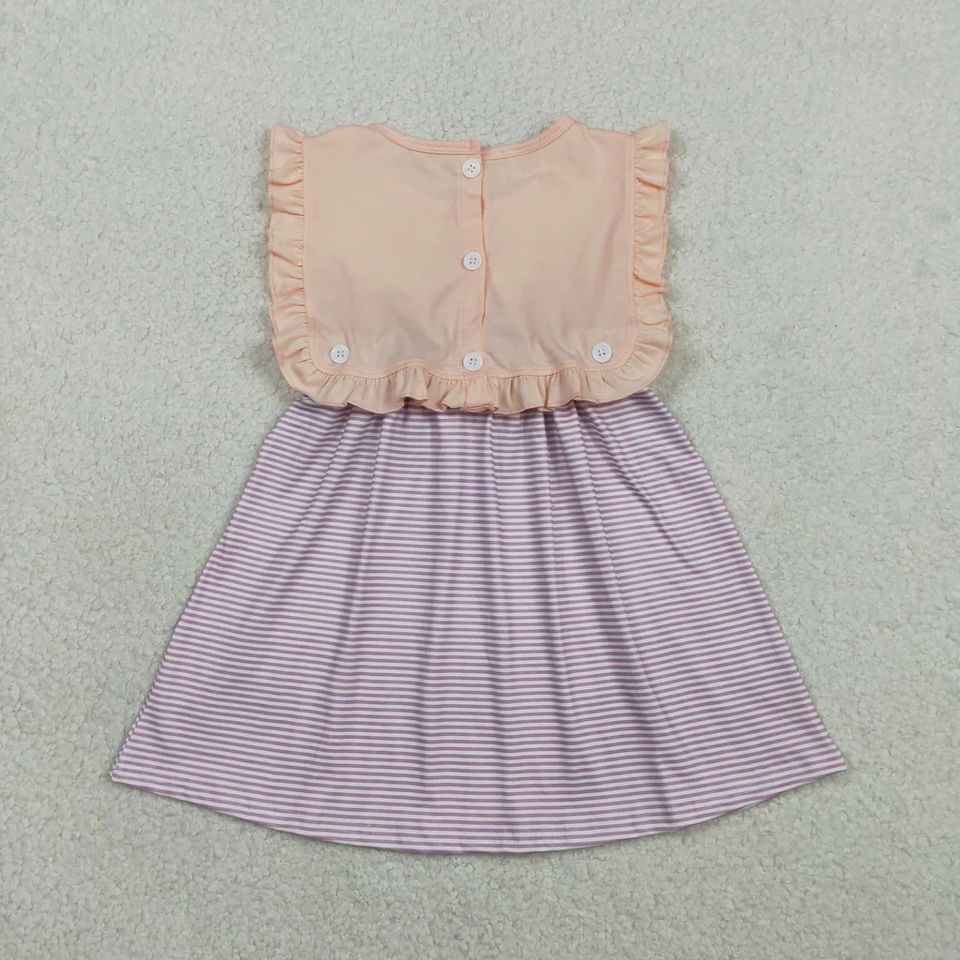 ชุดเดรสลำลองสำหรับเด็กผู้หญิง ลายทางสีม่วงชมพู ผ้าสแปนเด็กซ์/คอตตอน แบบผูกเอว รักษ์โลก เหมาะสำหรับฤดูร้อน