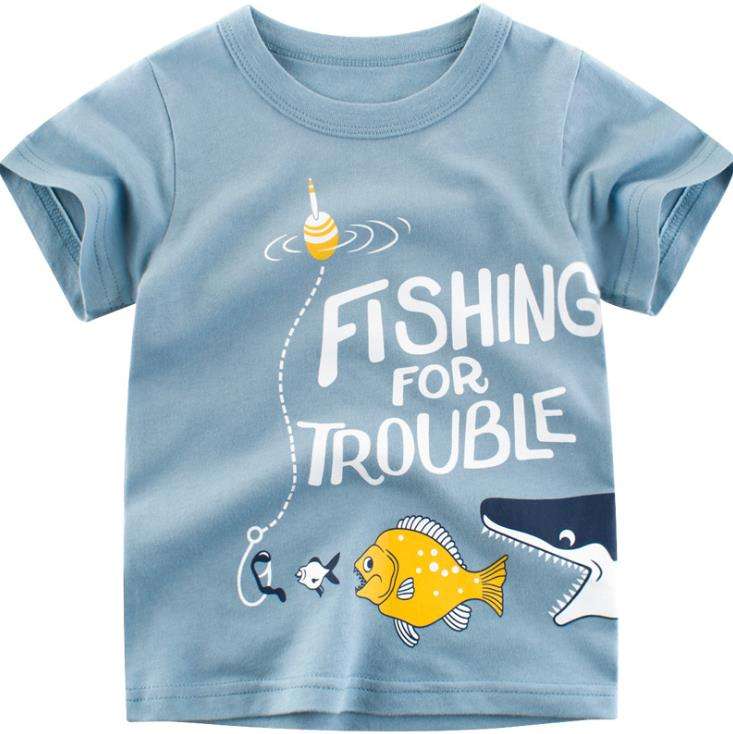 เสื้อยืดเด็กแบบเป็นมิตรกับสิ่งแวดล้อม เสื้อยืดแขนสั้นพิมพ์ลายสำหรับเด็กผู้ชายรุ่นใหม่สำหรับฤดูร้อน ขายส่งเสื้อยืดสีน้ำเงินเข้ม