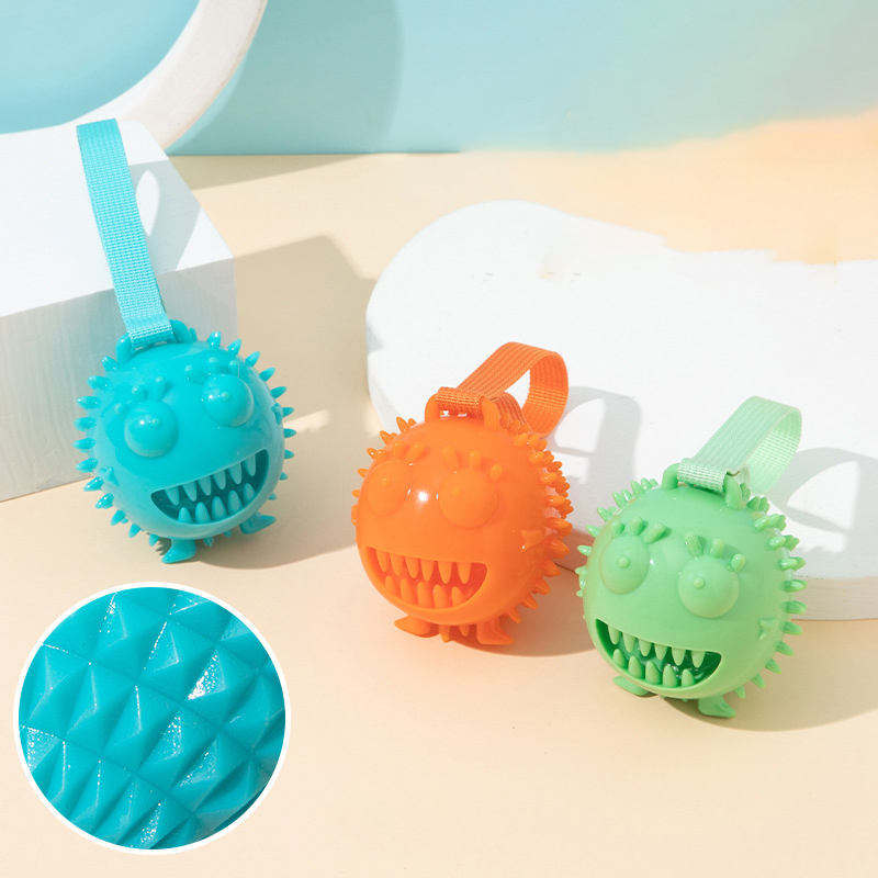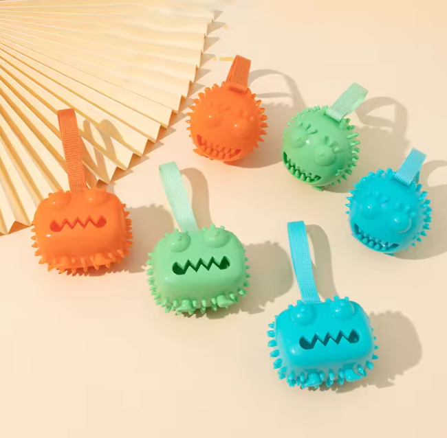 ของเล่นเคี้ยวสำหรับสุนัขแบบมีหนาม ทำจาก TPR เป็นมิตรกับสิ่งแวดล้อม พร้อมหูจับเพื่อสุขภาพฟัน และดีไซน์ป้องกันการรั่วซึมสำหรับใส่อาหาร