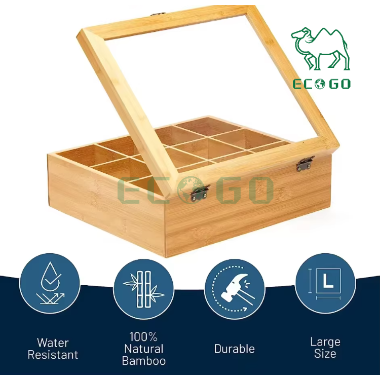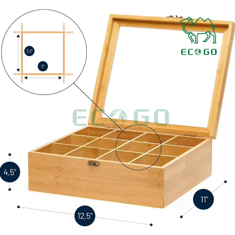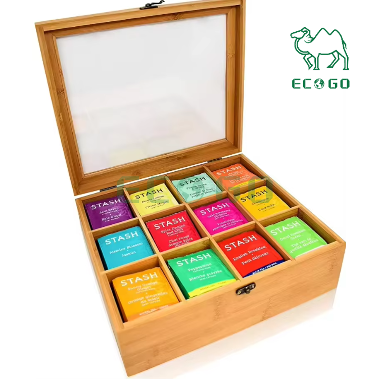 ที่ใส่ถุงชาเป็นมิตรกับสิ่งแวดล้อมช่องใส12ช่องใส่ชาถุงชาไม้ไผ่