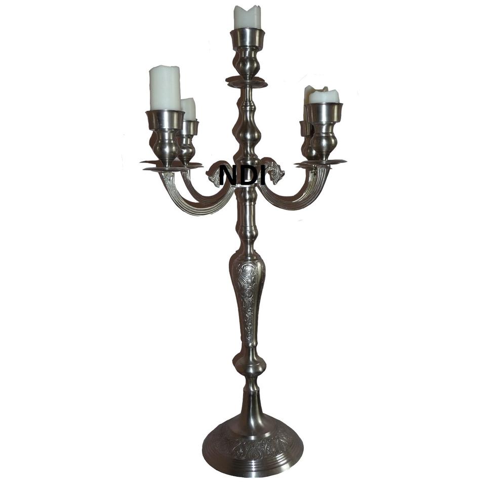 เชิงเทียนโลหะและแก้ว5แขนดีไซน์นูนเชิงเทียนโลหะและแก้วเป็นมิตรกับสิ่งแวดล้อม