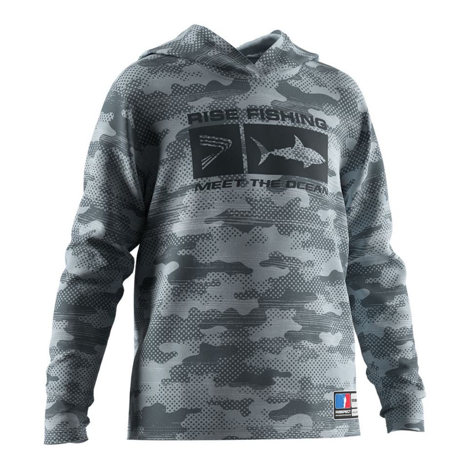 เสื้อตกปลาเด็กแขนยาวผ้าเจอร์ซีย์สีเขียว ป้องกันรังสียูวี UPF 50 ระบายอากาศ แห้งเร็ว เป็นมิตรกับสิ่งแวดล้อม มีฮู้ด ไซส์ใหญ่พิเศษ