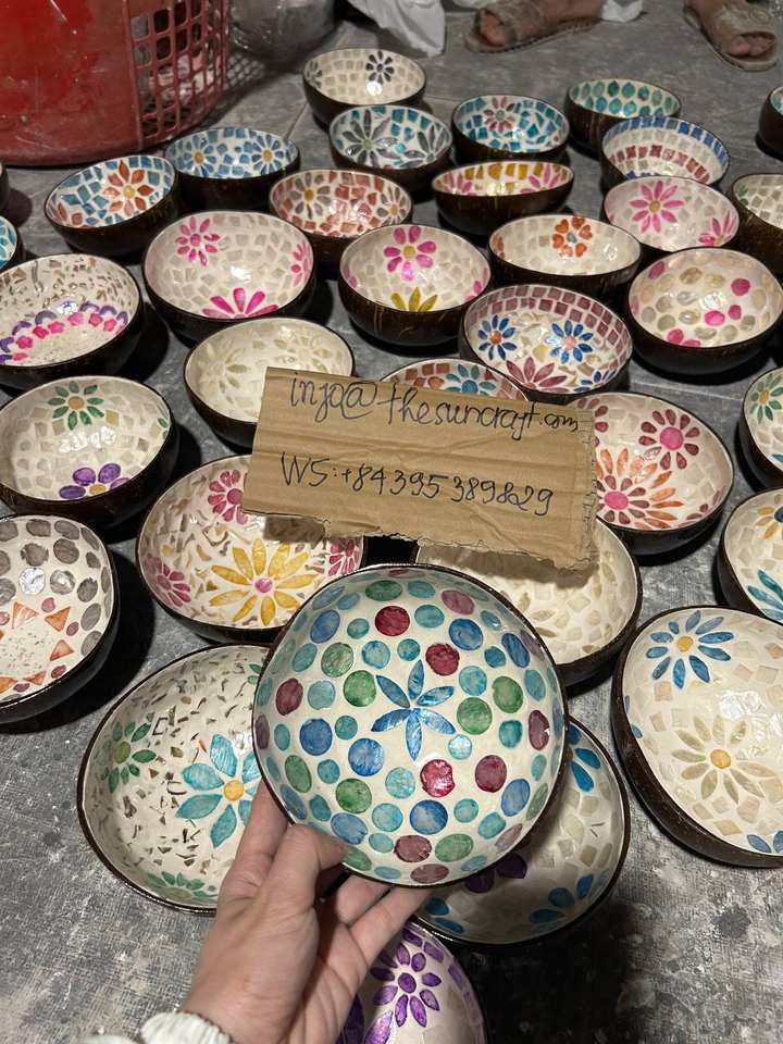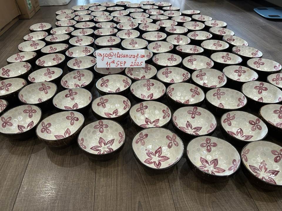 ชุดของขวัญวีแกนรักษ์โลก - ชามมะพร้าวเคลือบเงาฝังมุก - ไม้ธรรมชาติ
