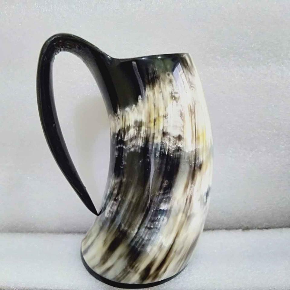 แก้วมักไวกิ้งฮอร์นขัดเงาเป็นมิตรกับสิ่งแวดล้อมงานฝีมือธรรมชาติงานหัตถกรรมสไตล์สัตว์ตกแต่งบ้านปรับแต่งสีคริสต์มาสได้ตามต้องการ