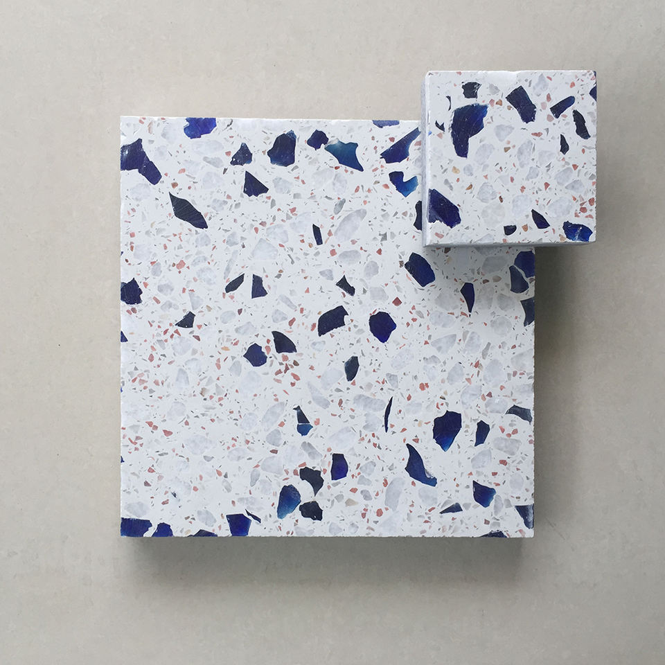 Eco-Friendly White Blue Natural Cement Terrazzo Stone Flooring Tiles Sustainable Geometric Artificial Stone Competitive Price