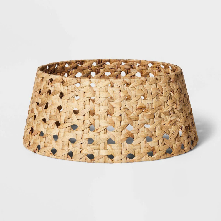 กระโปรงหวายต้นคริสต์มาสเป็นมิตรต่อสิ่งแวดล้อมปลอกคอฐานหวายธรรมชาติสำหรับตกแต่งวันหยุดแบบชนบทและตกแต่งบ้านตามฤดูกาล