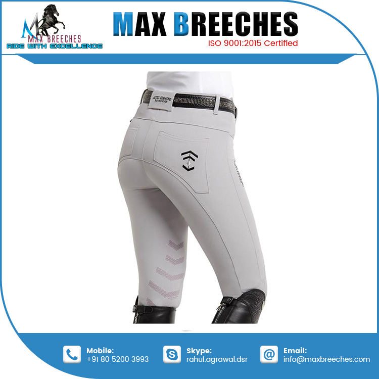 Jodhpurs ขี่ม้าแบบเต็มที่นั่งของผู้หญิงเป็นมิตรกับสิ่งแวดล้อมกางเกงนิรภัยไนลอนพิมพ์โลโก้แบบกำหนดเองได้พิมพ์ลายซิลิโคนขี่ม้าส่งออกทั่วโลกของอินเดีย