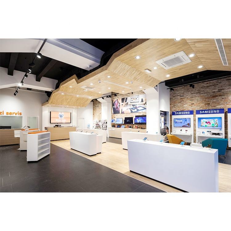 ชั้นวางโทรศัพท์มือถือแบบตั้งโต๊ะ ทำจากไม้ เป็นมิตรกับสิ่งแวดล้อม เคลือบเงา ปรับแต่งขนาดและสีได้สำหรับร้านค้า