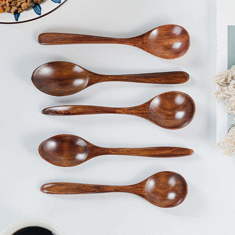 ช้อนไม้ทำอาหารที่เป็นมิตรกับสิ่งแวดล้อมสำหรับกวนผสมและให้บริการอุปกรณ์ไม้ทำด้วยมือธรรมชาติ