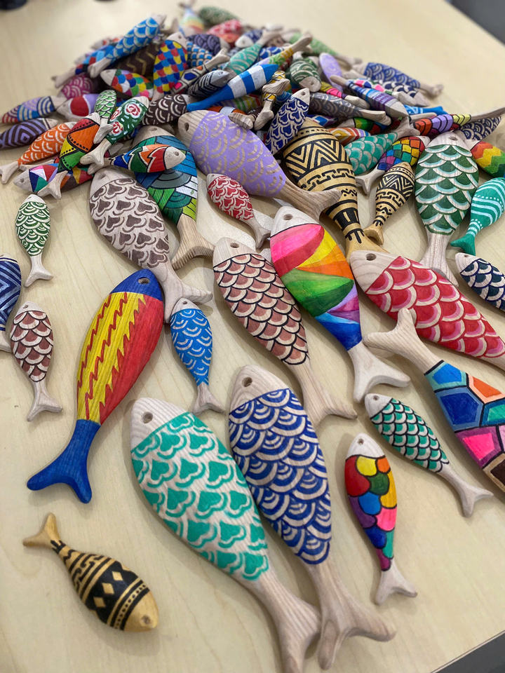 ปลาไม้ที่เป็นมิตรกับสิ่งแวดล้อมสำหรับตกแต่งบ้านสร้างขึ้นโดยช่างฝีมือสั่งซื้อจำนวนมาก/ปลาไม้ทำด้วยมือจากเวียดนาม