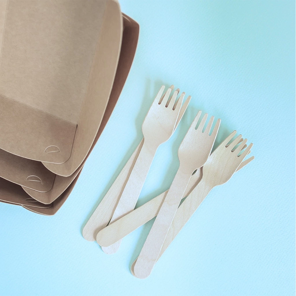 ส้อมไม้แบบใช้แล้วทิ้งเป็นมิตรกับสิ่งแวดล้อมย่อยสลายได้เครื่องใช้บนโต๊ะอาหารสำหรับร้านอาหารมื้ออาหาร