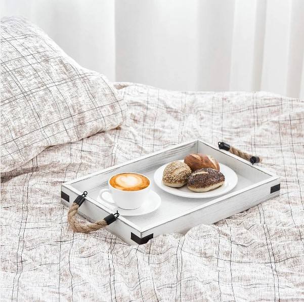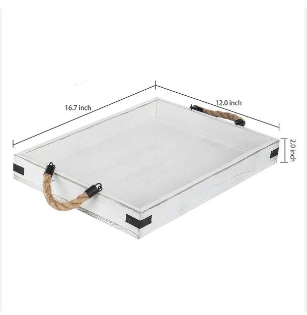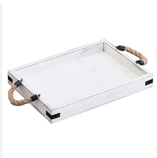 ถาดเสิร์ฟอาหารไม้ทำด้วยมือทรงสี่เหลี่ยมพร้อมที่จับเชือกถาดไม้สนเป็นมิตรต่อสิ่งแวดล้อมกำหนดขนาดได้เอง