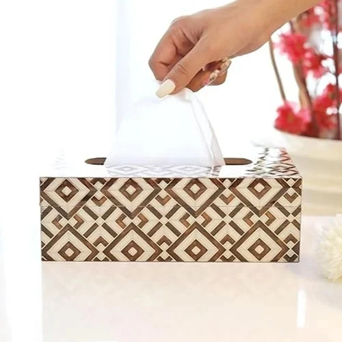 กล่องใส่กระดาษทิชชูไม้พิมพ์ลายมีนา ทนทาน เป็นมิตรกับสิ่งแวดล้อม | ที่ใส่ผ้าเช็ดปากสไตล์โบฮีเมียนลายมีนาคารีงานฝีมืออินเดียสำหรับใช้ในบ้าน