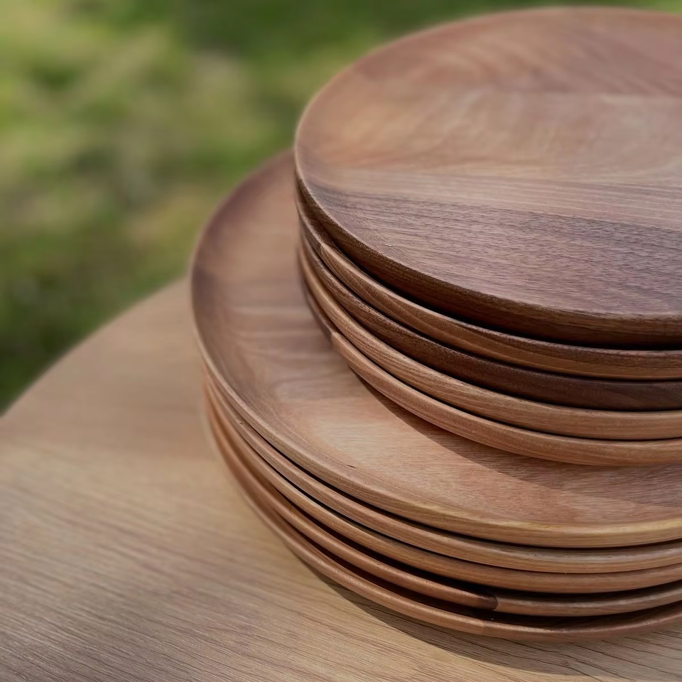 ชุดจานไม้รักษ์โลก ทำด้วยมือจากไม้เนื้อแข็ง จานเสิร์ฟสไตล์คลาสสิก ใช้กับเครื่องล้างจานได้