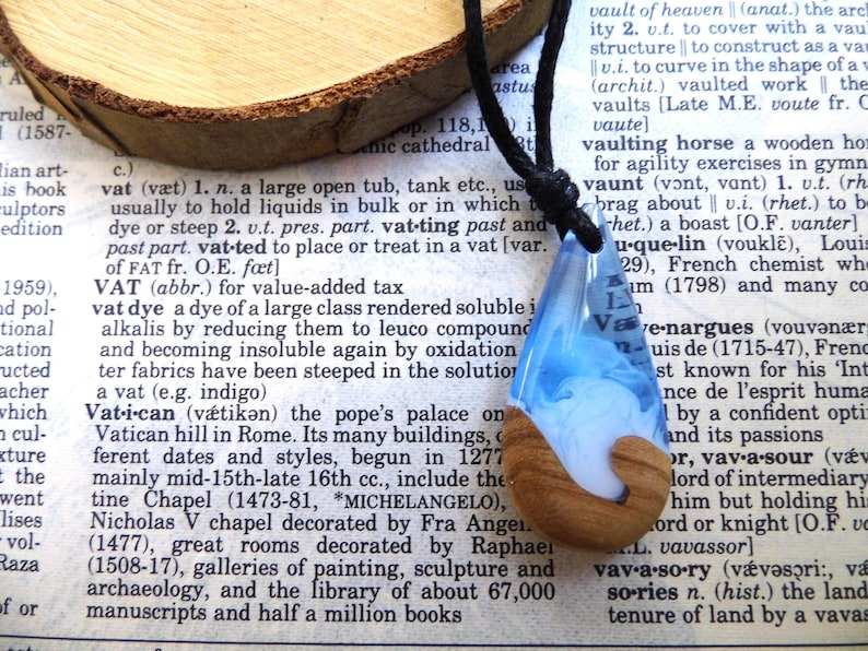 สร้อยคอจี้รูปทรงเรขาคณิตทำจากไม้แกะสลักและเรซิ่น งานแฮนด์เมดรักษ์โลก