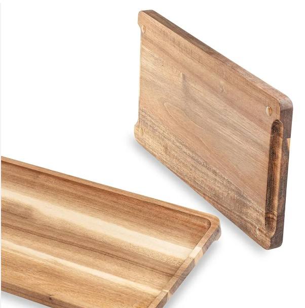 จานไม้อะคาเซียแบบแข็งสำหรับเสิร์ฟบนเตียงอาหารกลางวันถาดใส่ง่ายเป็นมิตรกับสิ่งแวดล้อม