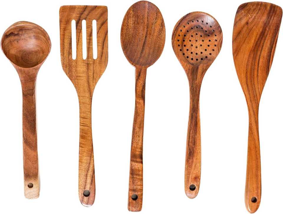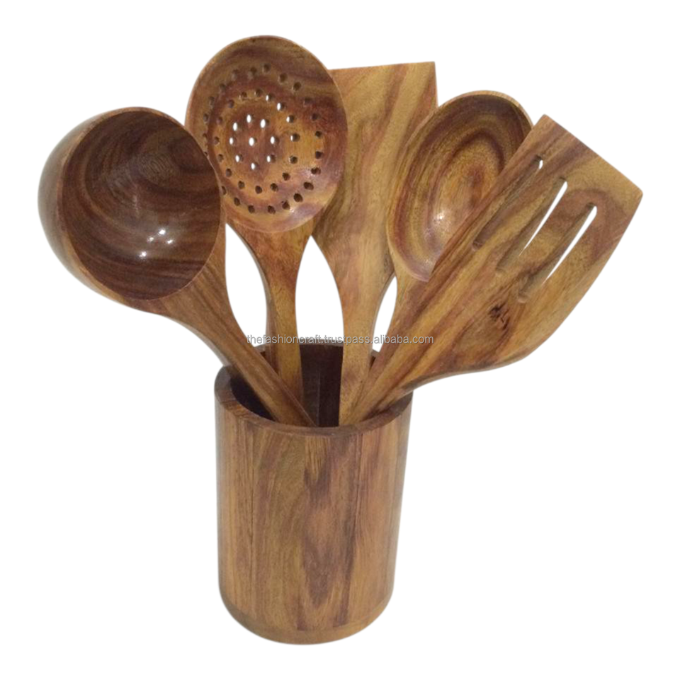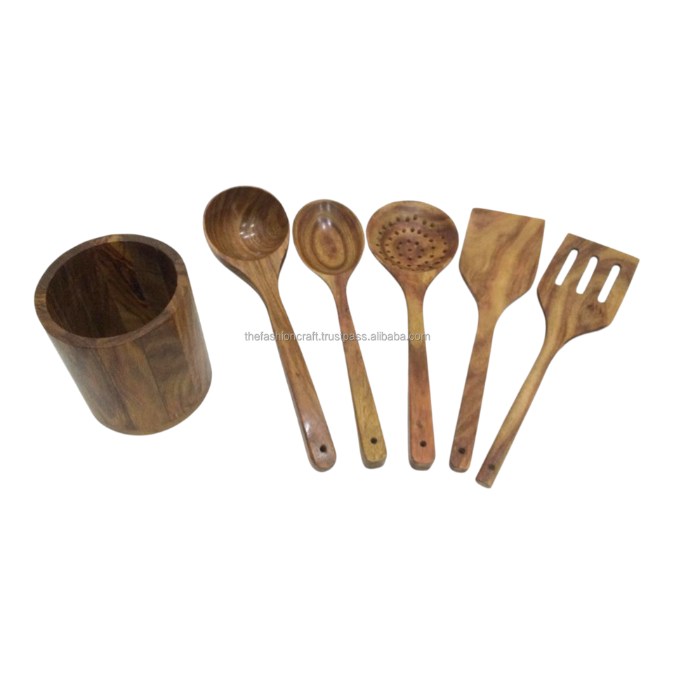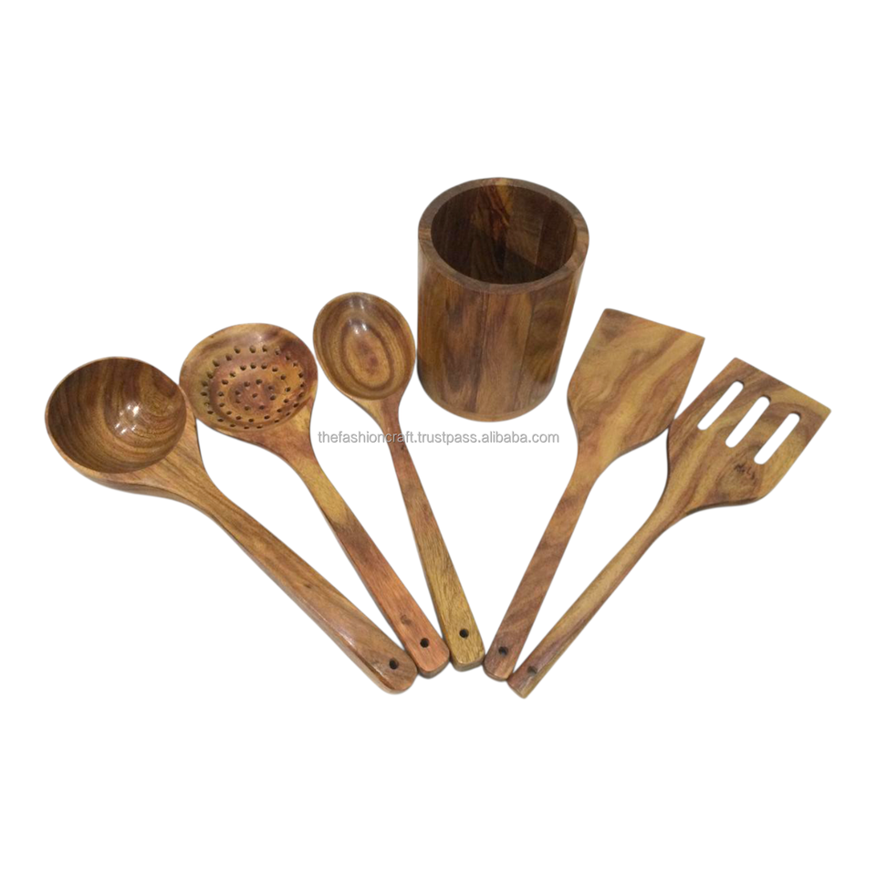 ชุดช้อนไม้รักษ์โลก อุปกรณ์ครัวสำหรับทำอาหาร ทานอาหาร แคมป์ปิ้ง ทนทาน ทำจากไม้ธรรมชาติ เครื่องครัวแฟชั่น งานฝีมือ TFC