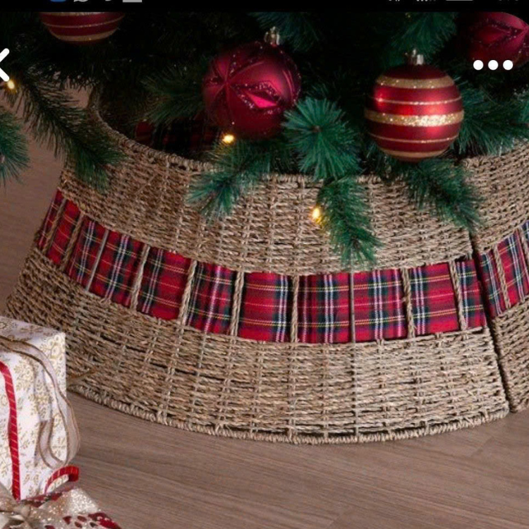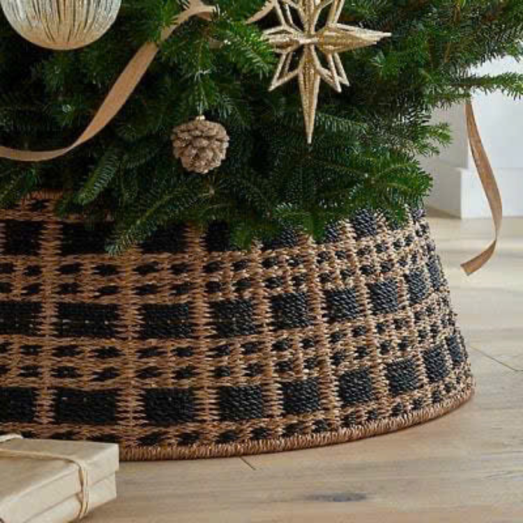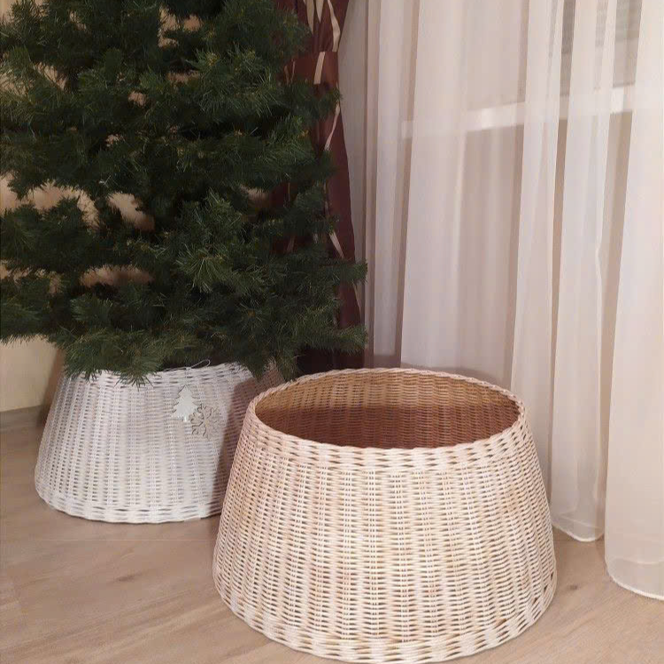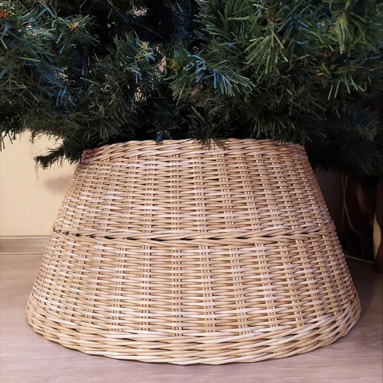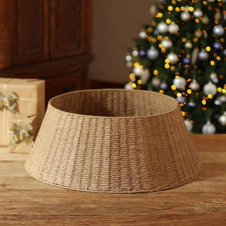 กระโปรงต้นคริสต์มาสแบบสานเป็นมิตรกับสิ่งแวดล้อมปกฐานหวายทำด้วยมือสำหรับตกแต่งต้นไม้ในวันหยุดตามธรรมชาติ