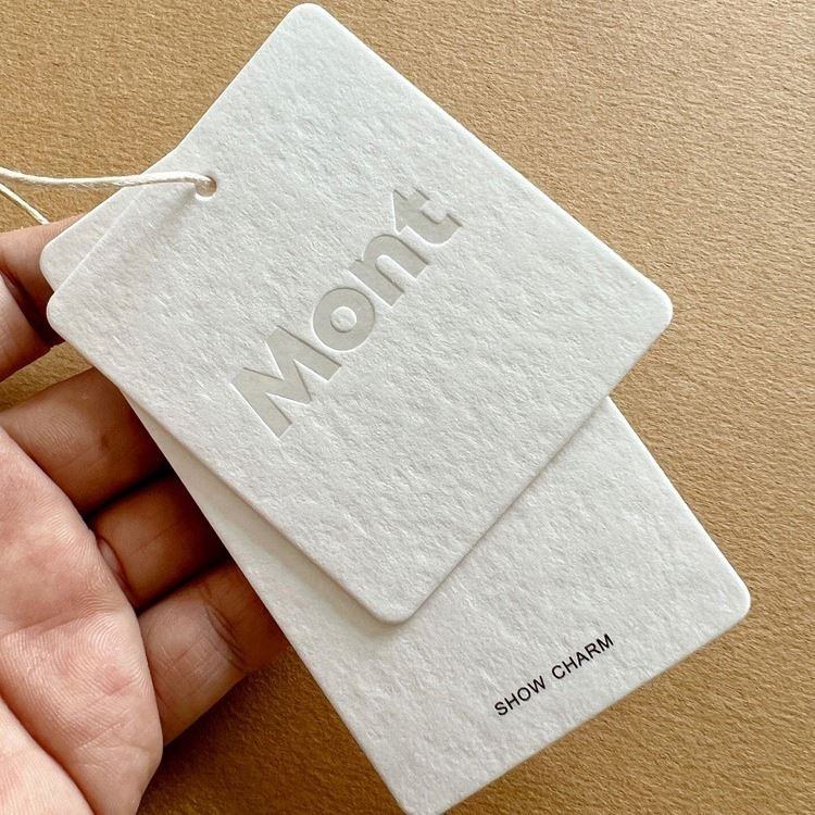ชื่อผลิตภัณฑ์:ป้ายเสื้อผ้าโลโก้ผมหรูหรานูนและป้ายแขวน