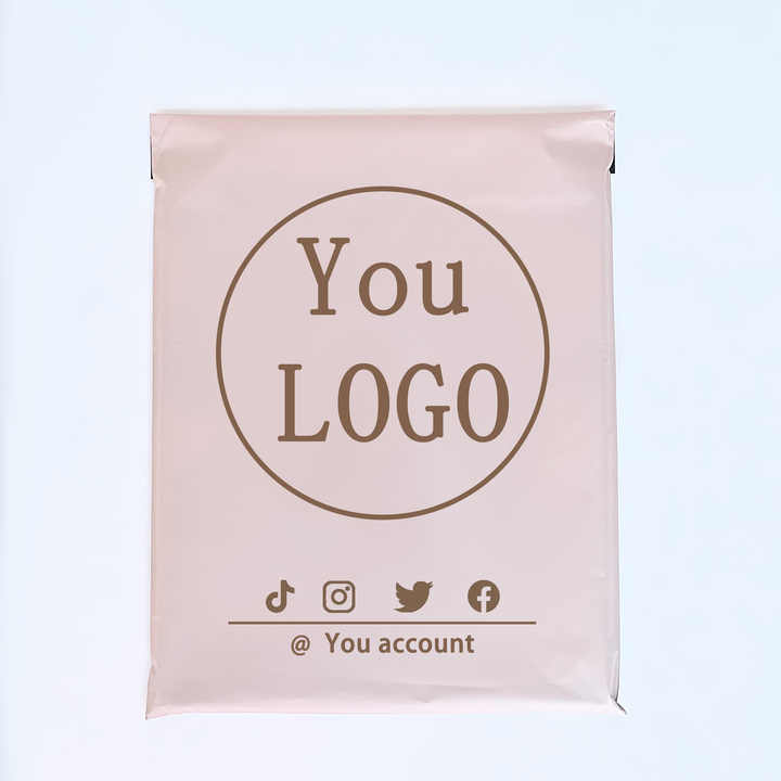 ถุงไปรษณีย์แบบด้านสีครีมนู้ดพิมพ์โลโก้ตามสั่ง สำหรับจัดส่งเสื้อผ้า บรรจุภัณฑ์เสื้อผ้า ถุงพลาสติกโพลีพิมพ์ลาย