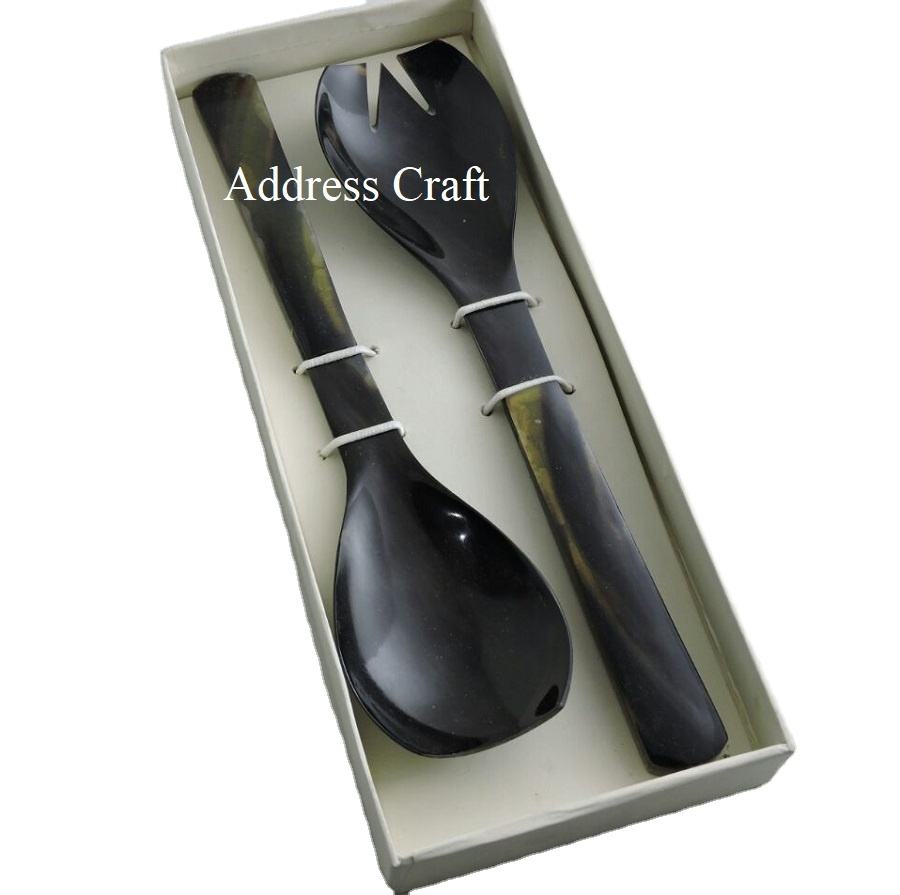 ชุดช้อนสลัดทำจากวัสดุธรรมชาติจากเขาควาย สำหรับใช้ในงานคริสต์มาส วาเลนไทน์ และงานอื่นๆ บนโต๊ะอาหาร ชุดช้อนส้อมทำจากเขาควาย อุปกรณ์สลัดทำจากเขาควาย