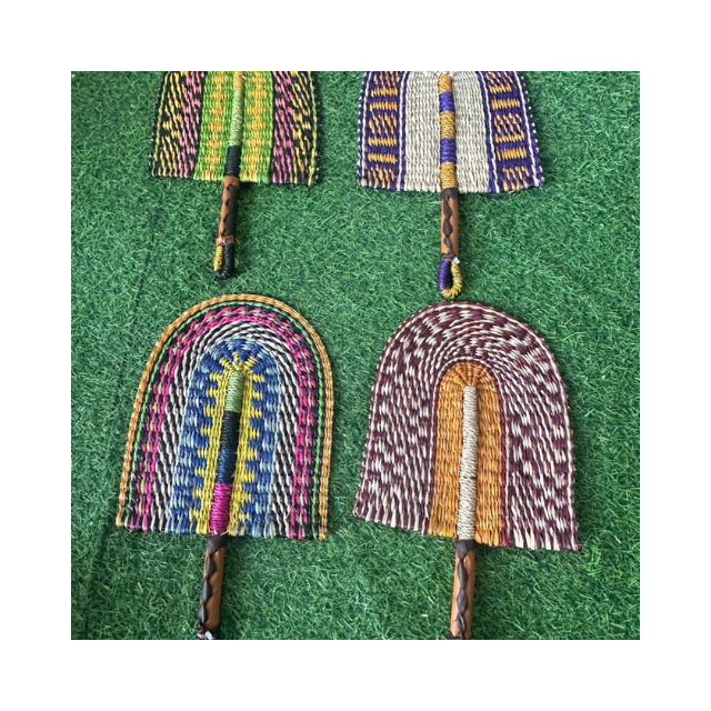 พัดลมมือใบปาล์มเชิงนิเวศพัดมือจากหญ้าทะเลทอสำหรับงานแต่งงานงานแฮนด์เมดสไตล์พัดเรียบง่ายจากงานฝีมือ99 GD