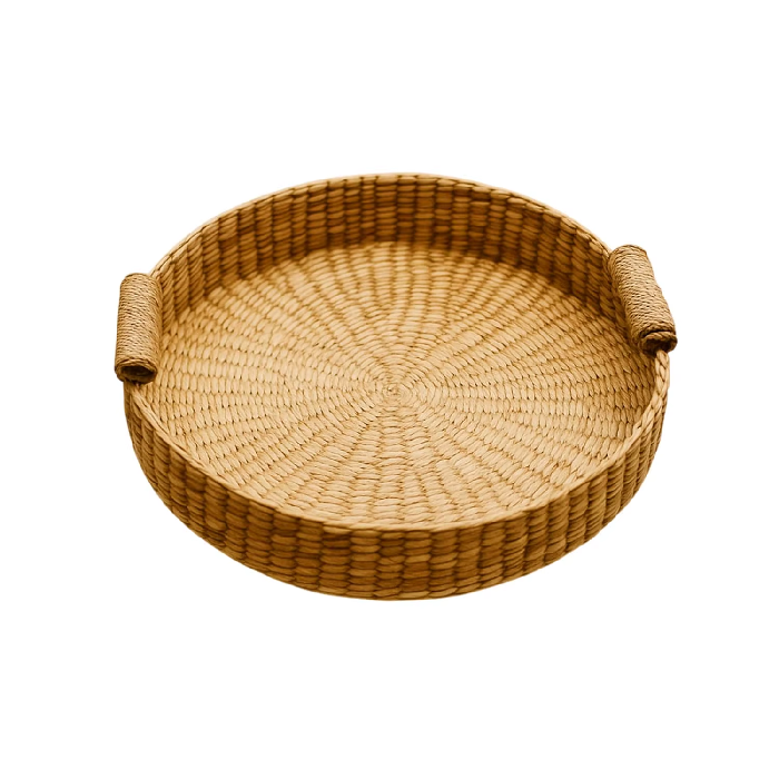 ถาดเก็บเครื่องสำอางไม้ไผ่ Eco Serve งานฝีมือดีไซน์ร่วมสมัยสำหรับเทศกาลดีวาลี ขนาดเส้นผ่านศูนย์กลาง 12 นิ้ว สูง 2.5 นิ้ว ลายแนวนอน
