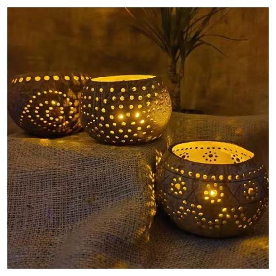 ที่ใส่เทียนเปลือกมะพร้าวทรงธรรมชาติ งานแฮนด์เมด รูปทรงรังสีดวงอาทิตย์ สำหรับตกแต่งพื้นที่อยู่อาศัย