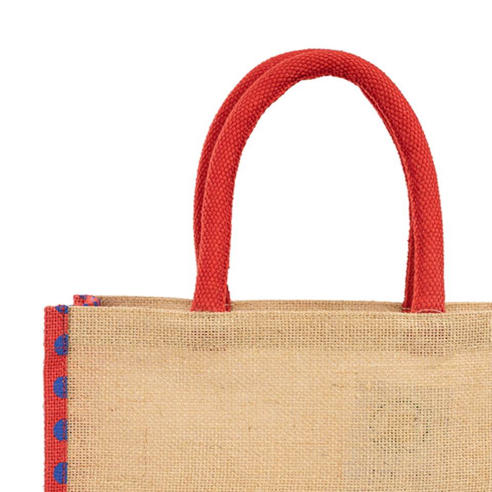 กระเป๋าโท้ทผ้ากระสอบธรรมชาติ100% เป็นมิตรกับสิ่งแวดล้อมพร้อมที่จับสายรัดเทปพิมพ์ลายและโลโก้ตามสั่ง