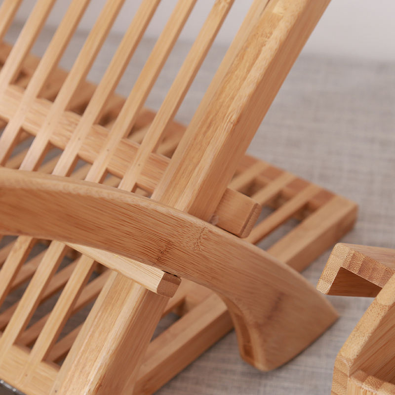 ชั้นวางจานไม้ไผ่2ชั้นพับได้ดีไซน์ใหม่เป็นมิตรกับสิ่งแวดล้อมทนทานพร้อมที่วางอุปกรณ์