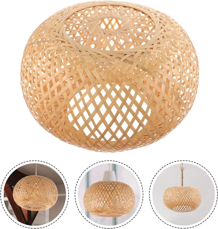 โคมไฟไม้ไผ่เป็นมิตรกับสิ่งแวดล้อม: โคมไฟระย้าทอกรงโคมไฟหวายฝาครอบโคมไฟระย้าสไตล์วินเทจ